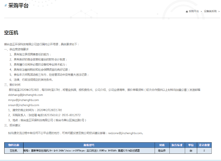 為了打造開放共享、高效透明的供應(yīng)商體系,引入更多優(yōu)質(zhì)的合作伙伴加入公司供應(yīng)商庫,同時(shí)讓合作伙伴及時(shí)獲取公司采購信息,現(xiàn)開通金正環(huán)保采購信息平臺(tái),以便查詢。