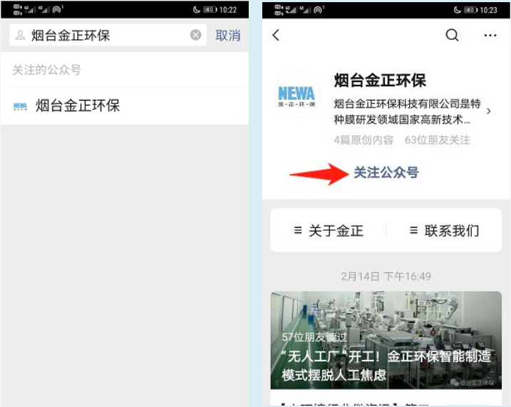 打開手機(jī)微信,添加公眾號(hào)“煙臺(tái)金正環(huán)?!?;