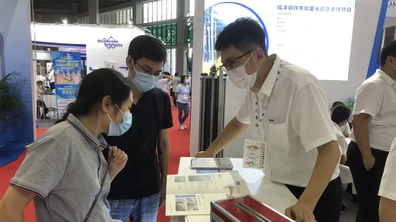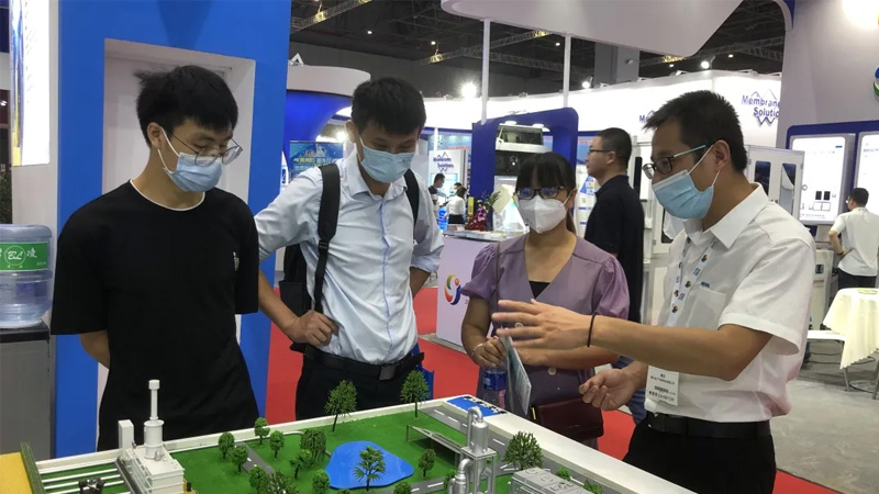 雖然展會期間天氣炎熱,但是酷暑并沒有阻擋住客戶的腳步和熱情。金正環(huán)保帶著第三代導流盤、100bar膜組件、DTRO試驗樣機和CDRO系列膜組件,以及各領(lǐng)域的解決方案、核心工藝包贏得了眾多工程公司和客戶的青睞,關(guān)注、咨詢的人絡繹不絕,熱鬧非凡。